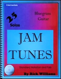 Bluegrass Guitar Jam Tunes and Bluegrass Mandolin Jam Tunes are my arrangements of 25 of the most common and most often played picking tunes, and are intended for the advanced beginner to the upper intermediate player. These are not for the beginner who is just starting out.